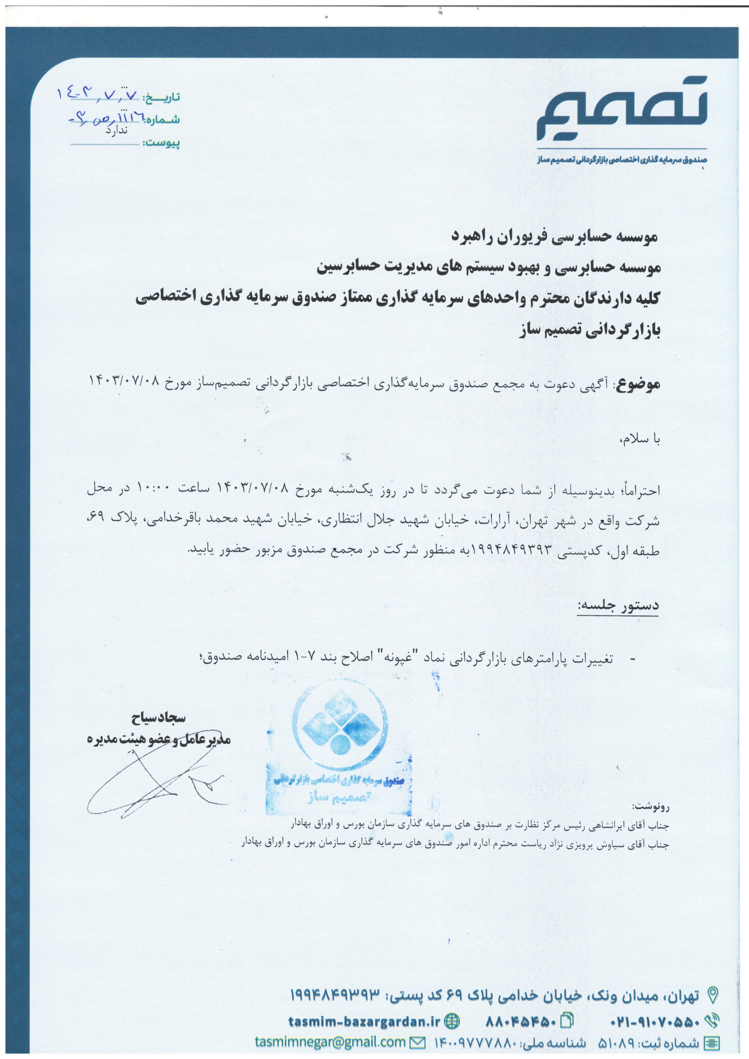تصميمات مجمع صندوق سرمايه گذاري مورخ ۱۴۰3/۰3/07